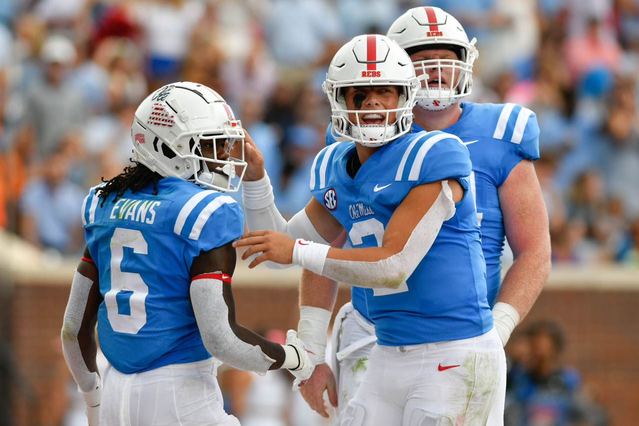 Running back Zach Evans caught a touchdown reception from 23 yards out. Evans played a strong running game against Auburn and has proved to be a promising offensive player for the Ole Miss Rebels, along with Judkins.
